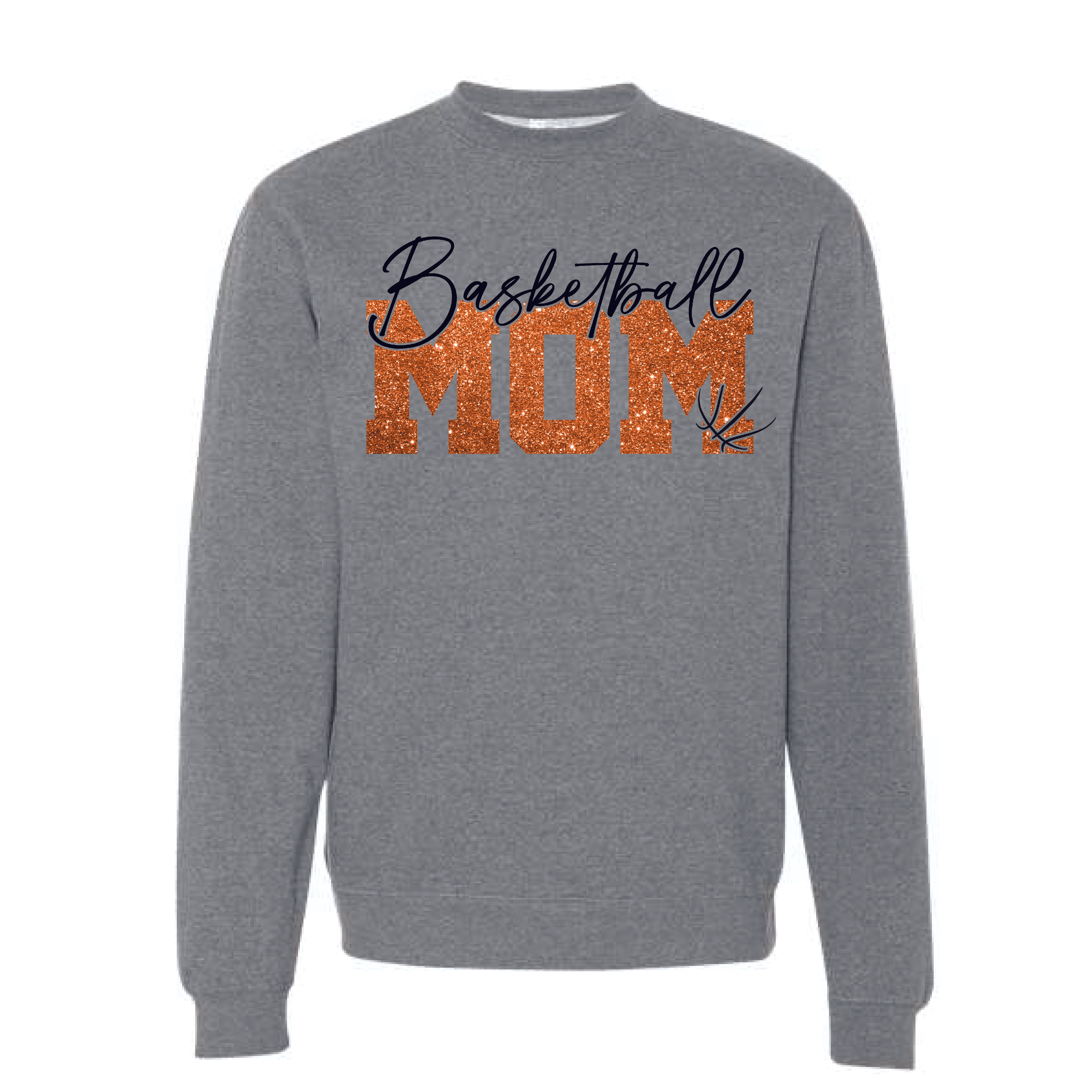 Enjoy our Shimmer Basketball Mom Crew design on Independent mid-weight Crewneck in heather grey!