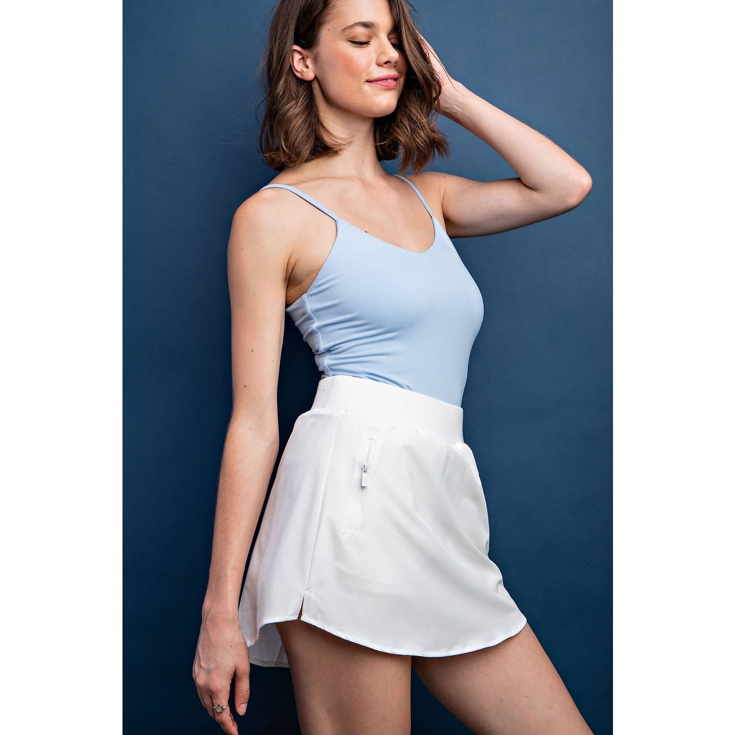 Our versatile skort is the perfect blend of style and functionality. This skort combines the elegance of a skirt with the comfort and coverage of inner fleece shorts. The elastic waist ensures a snug yet flexible fit, while a convenient zipper pocket adds a touch of practicality for your essentials. Whether you're on the golf course, hiking trail, or simply enjoying a casual day out, this skort is your go-to choice for comfort, style, and convenience.