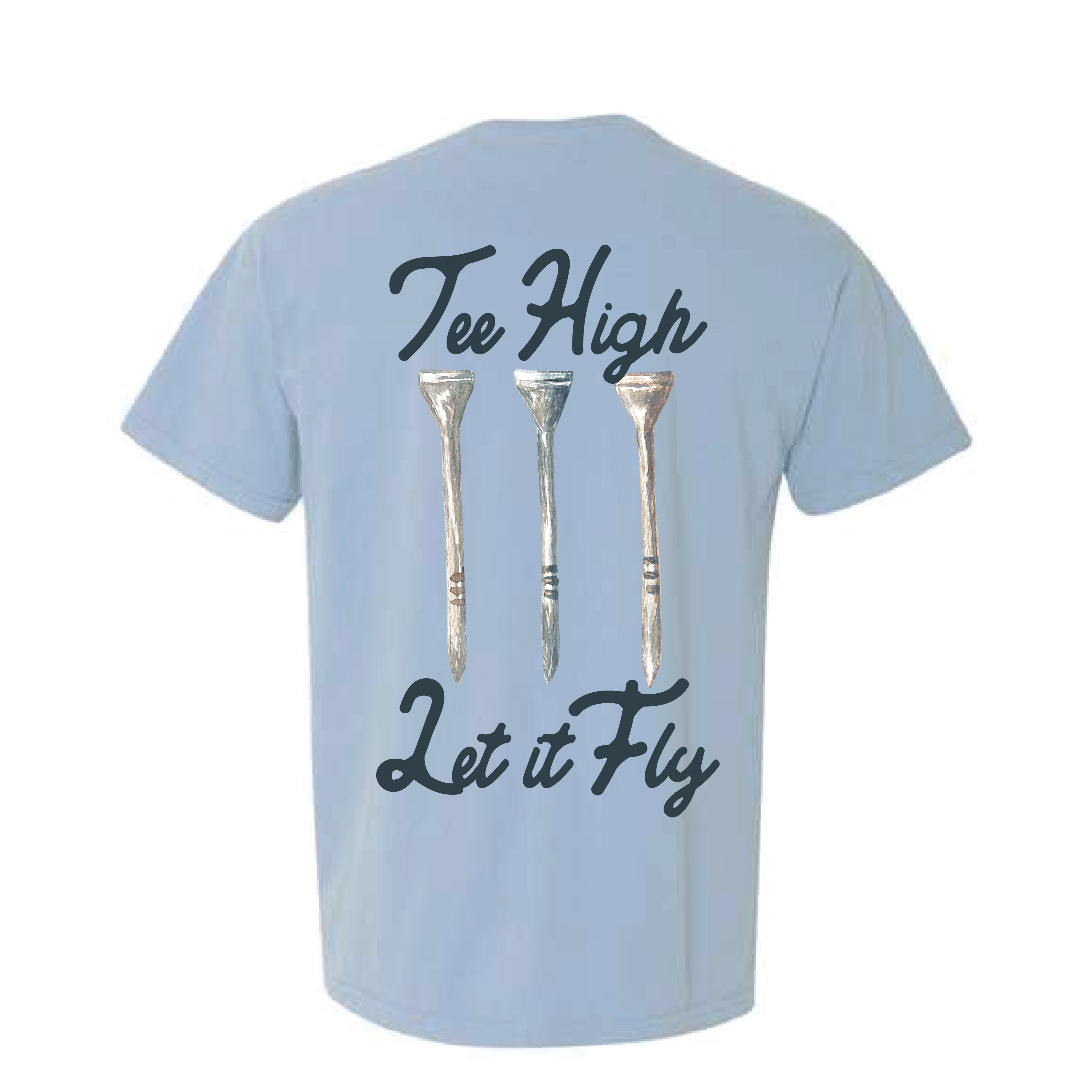 Our Tee High design is featured on a classic Comfort Colors pocket tee in Chambray!