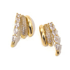 Indulge in the decadent luxury of our Comet Earrings. Crafted from gleaming gold, these cuff style earrings are adorned with sparkling crystals that will add a touch of glamour to any ensemble.