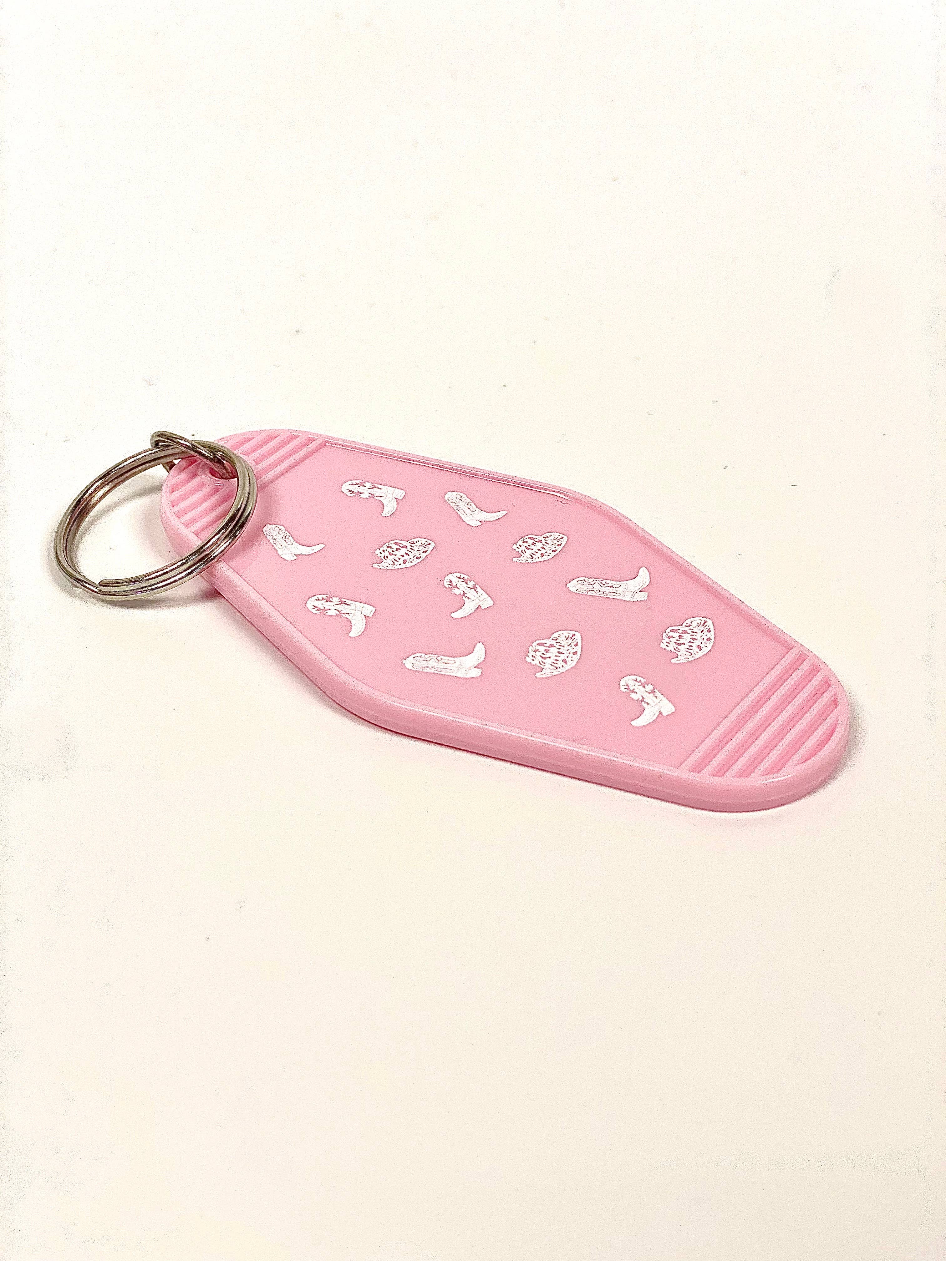 You know what they say: Save a horse, ride a cowboy! This key chain is perfect for the real country girls (or the wannabes like us)! These best selling keychains are back and with new designs! All keychains are embossed so they don't wipe off.