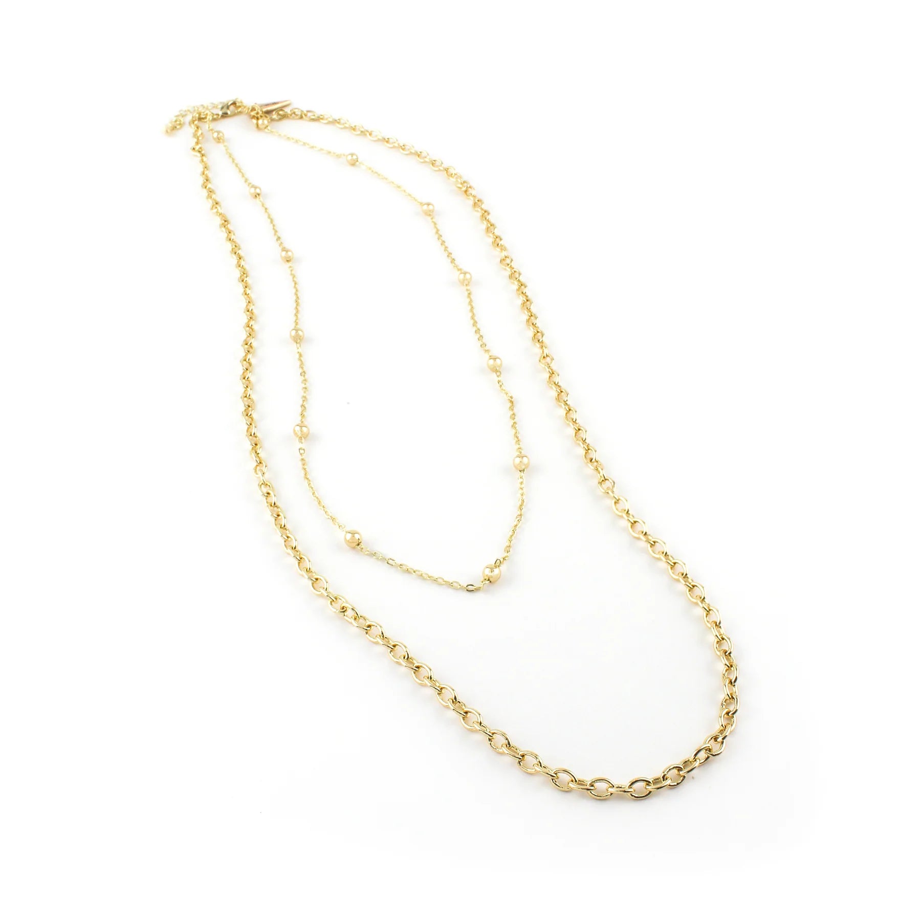 • This Celeste Necklace features an adjustable design and two layers of chain, creating a trendy, layered look.