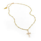 - A delicate gold chain suspending an iconic cross charm. A classic combo for a simplistic yet stunning style!