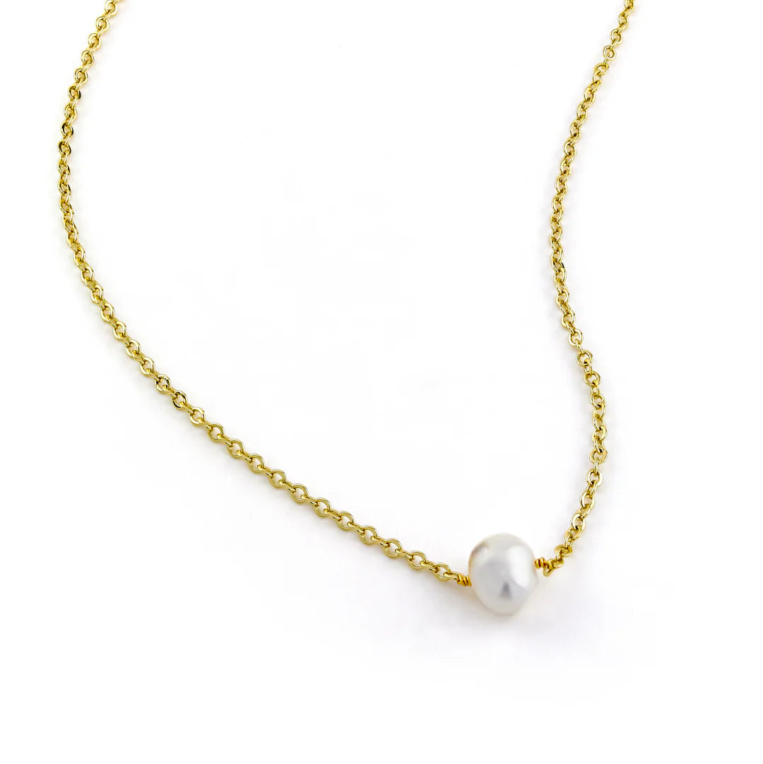 - Dress up any outfit with our elegant Julia Necklace. This simple yet stunning necklace features a single pearl, adding a touch of sophistication to any look.
