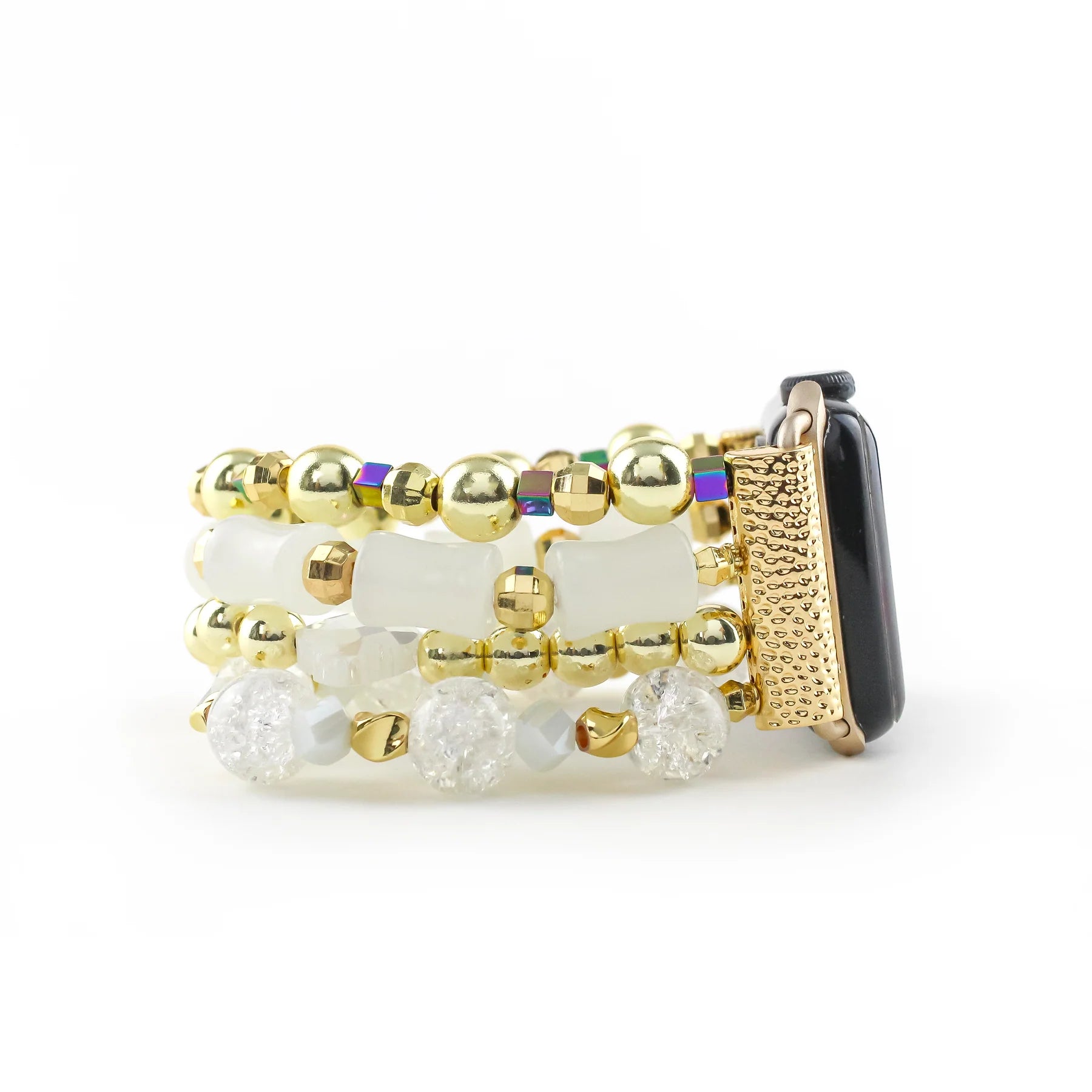 - No need to leave your style at the door - add a twinkle of sophistication to your Apple Watch with this elegant white and gold band! Get a timelessly chic look with an accessory that you can depend on. Shine bright with Twinkle!