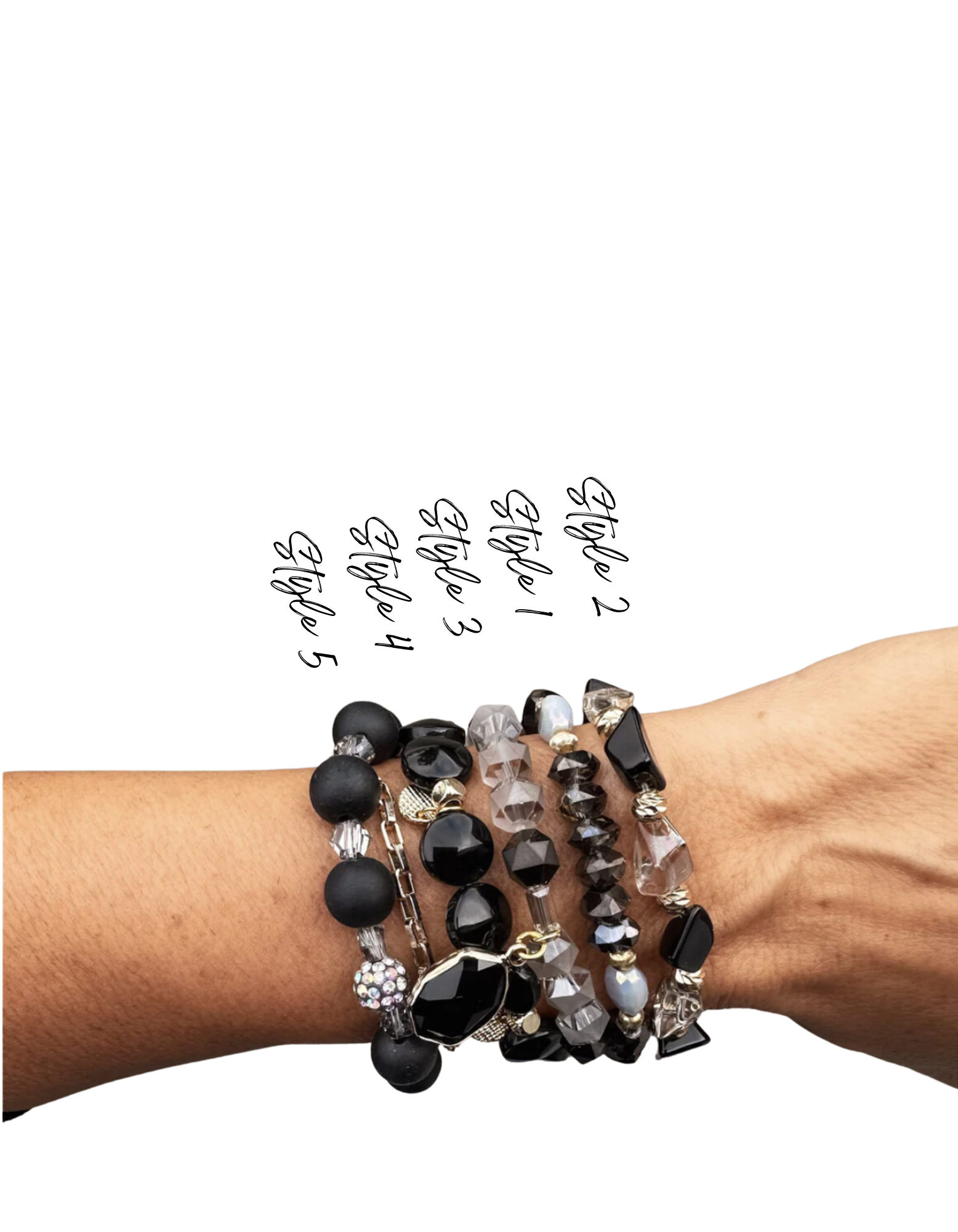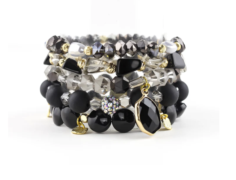 The Whiplash Stack offers a sleek and edgy look with its onyx bracelet accents. Featuring the perfect combination of style and design, this stack is sure to make a statement. With its trendy fall vibes, the Whiplash Stack is a must-have accessory.