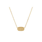 Beautifully hand crafted oval necklace, cable chain is adjustable 16-18", finished with a lobster claw clasp and packaged on gift card. Oval measures 3/8" left to right. 22k-yellow gold plated.