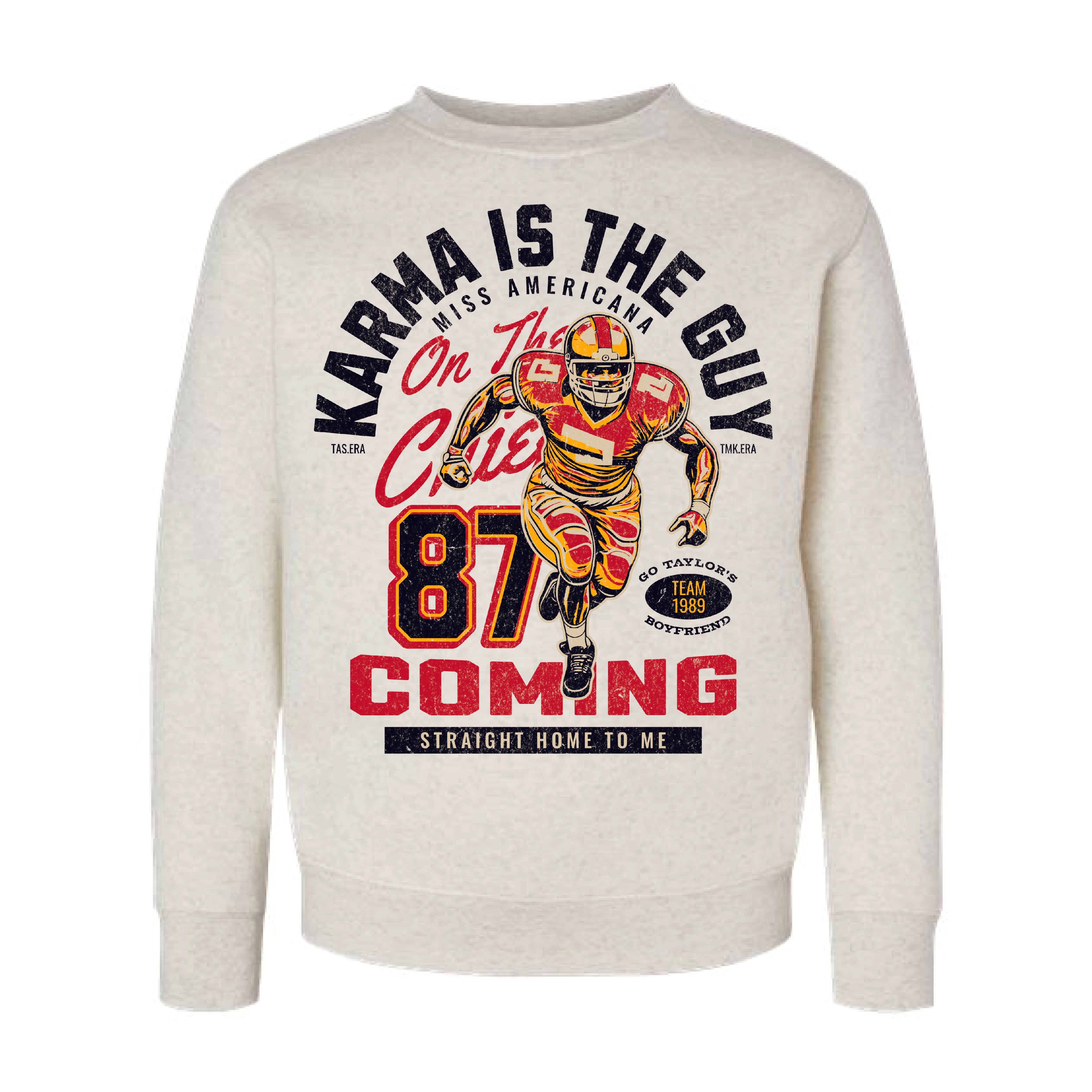 Enjoy our Retro KC Karma design on youth crewneck in Ivory!
