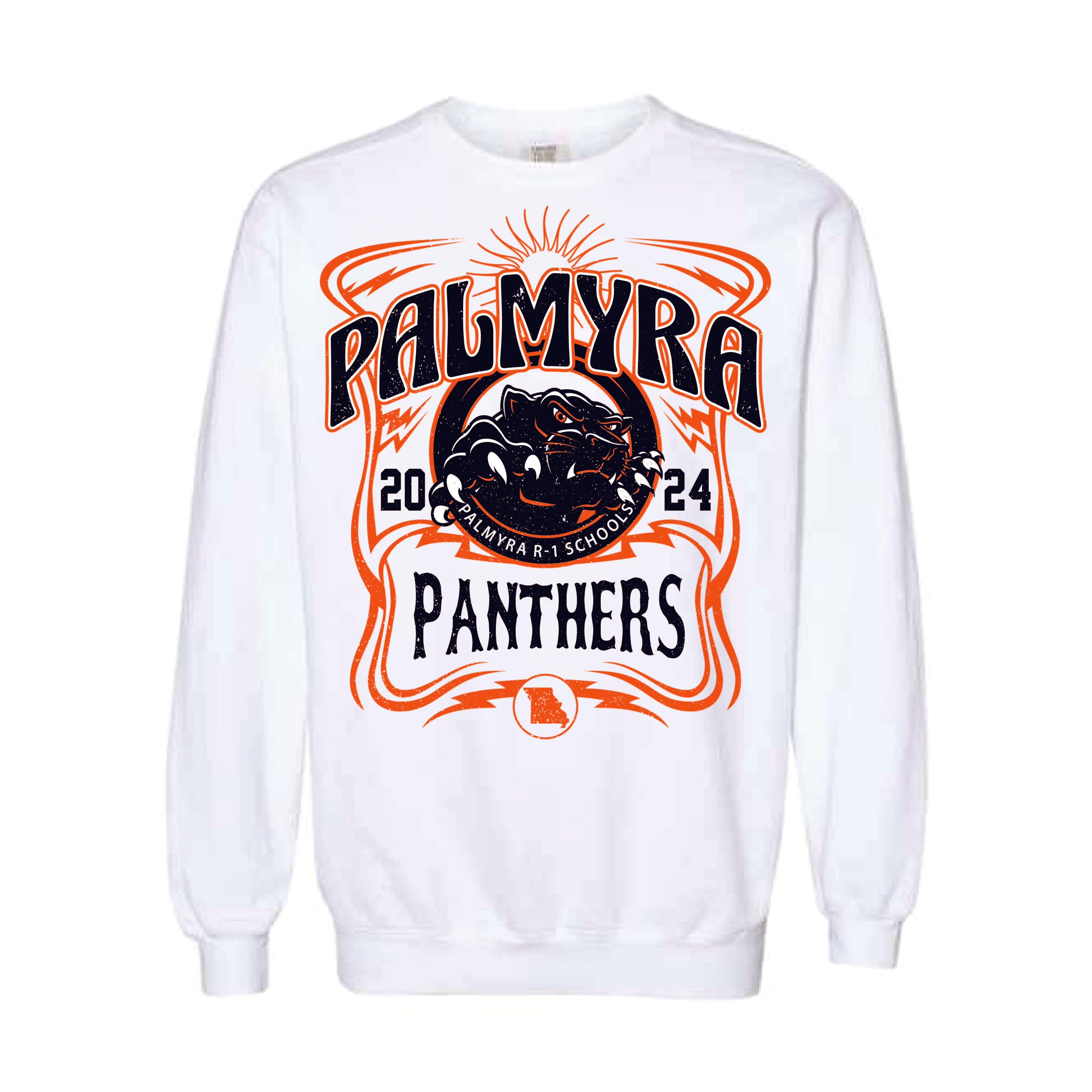 Enjoy our Palmyra Panthers Graphic on Comfort Colors crew in white & grey!