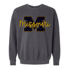 Enjoy our Missouri Bold & Scripty design on Comfort Colors Lightweight Crew in Black, White & Pepper!