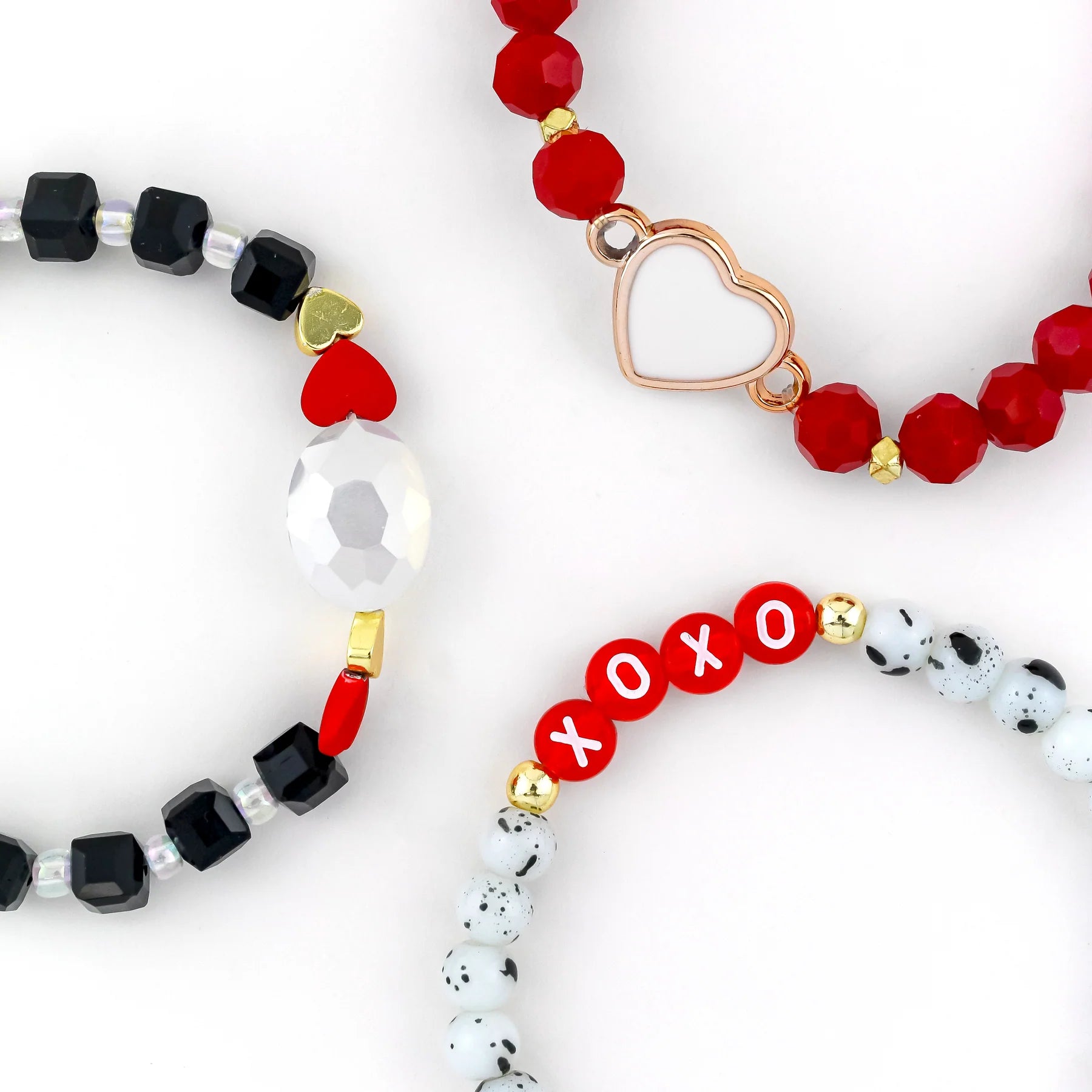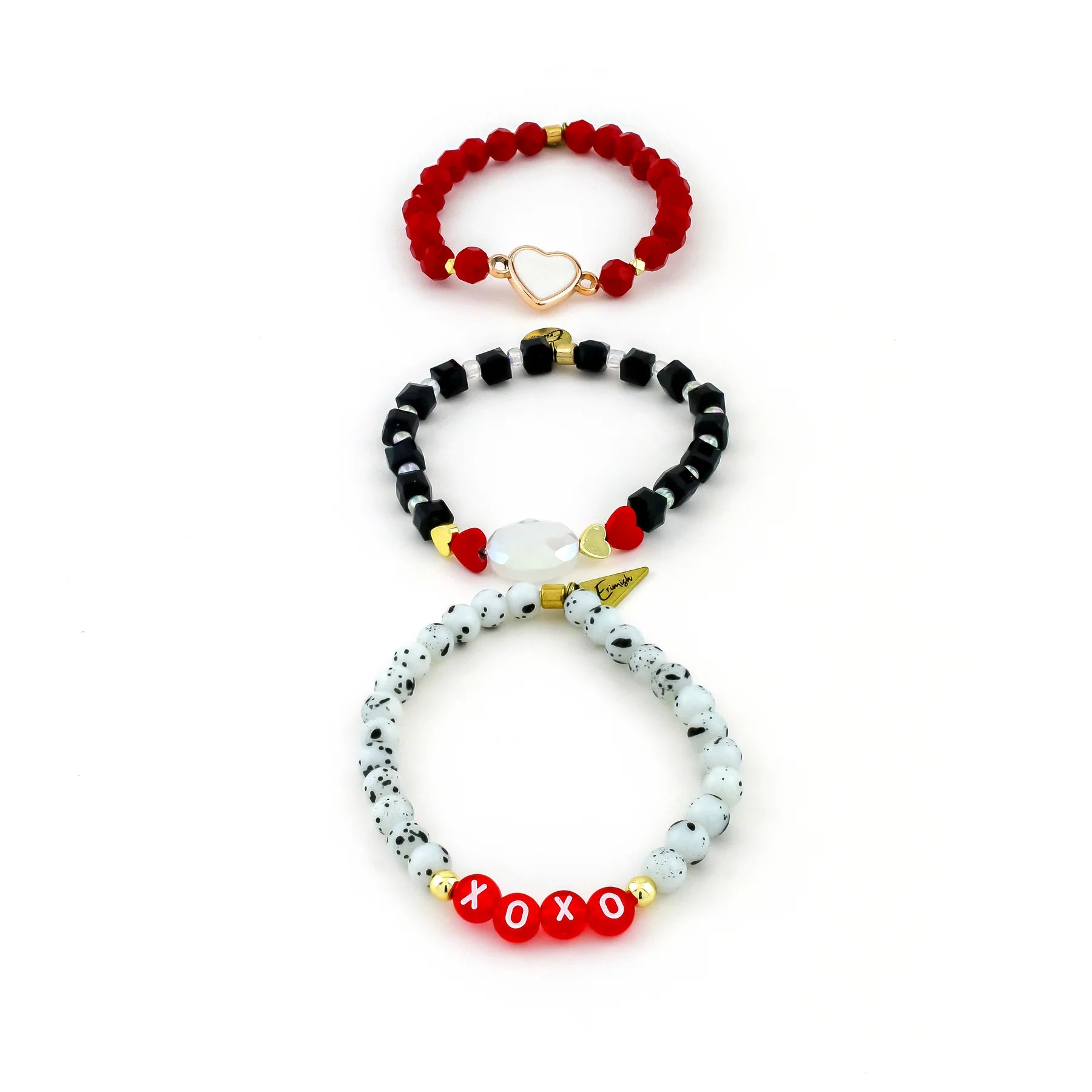- "Show some love with our Amour Starter Stack! This bracelet stack in hot pink, black, and gold will add a touch of sparkle to any outfit. Perfect for Valentine's Day or any occasion where you want to add a little extra love and shine."