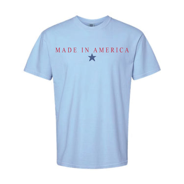 Enjoy our Made in America design on Comfort Colors tee in Hydrangea!