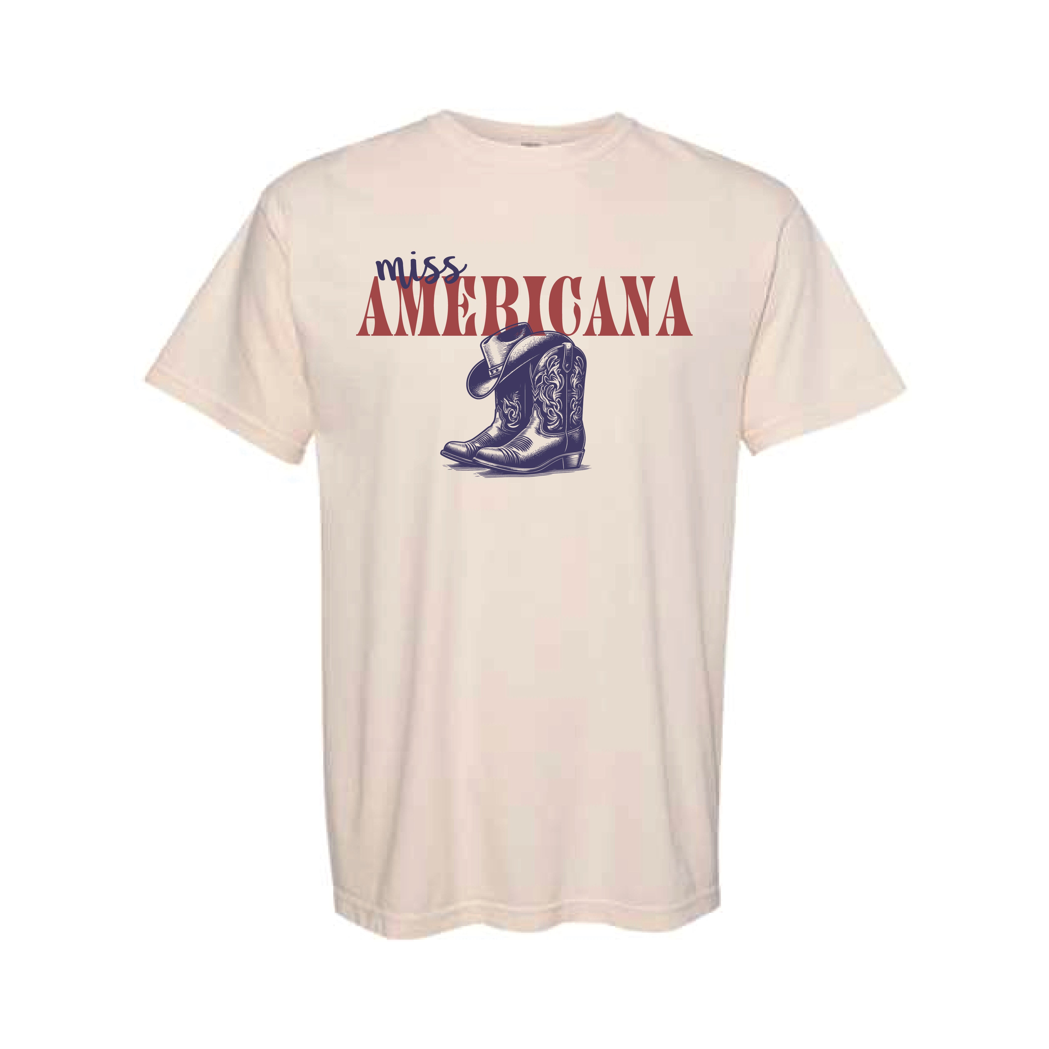 Our Miss Americana design is featured on Comfort Colors tee in Ivory