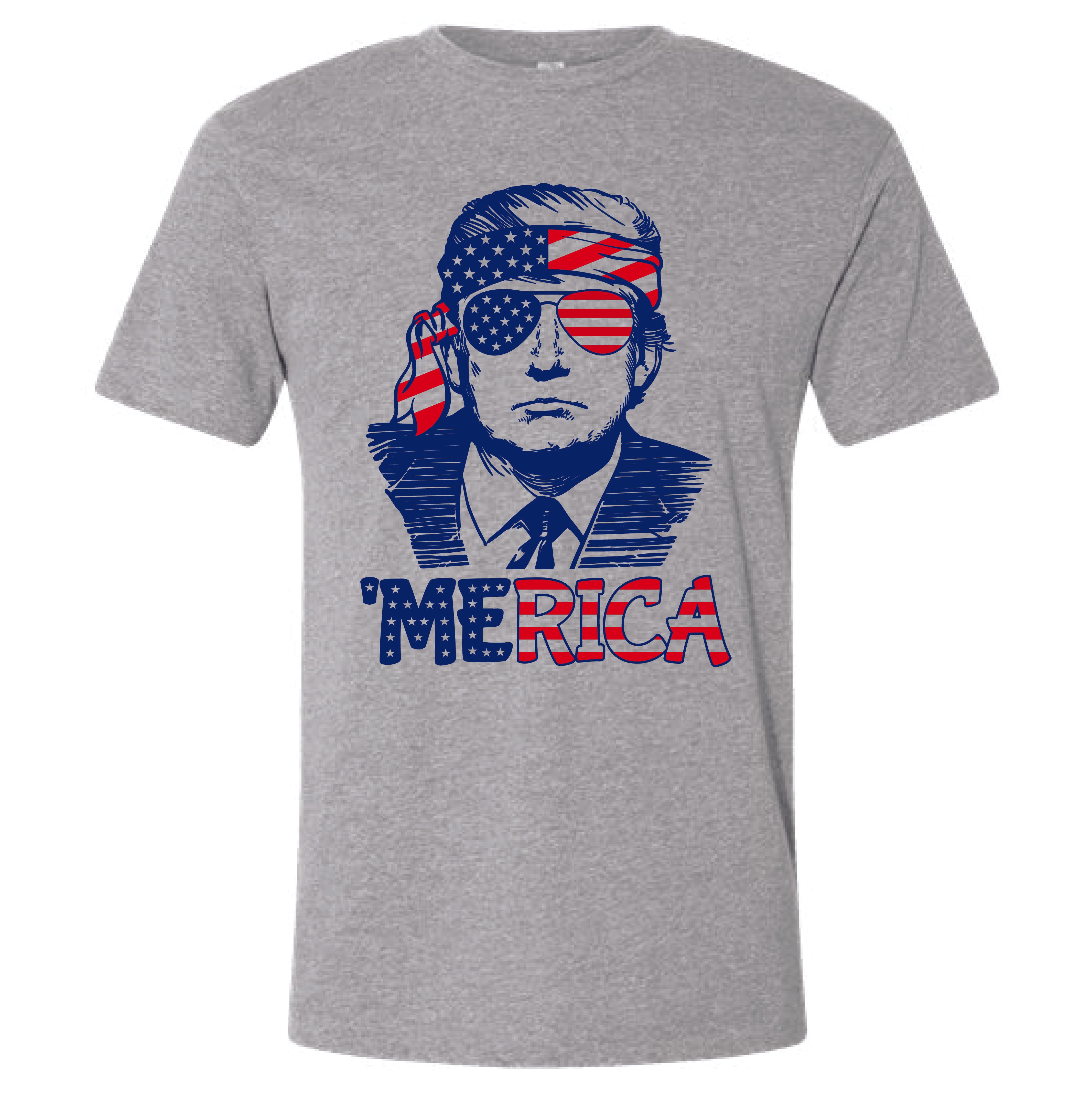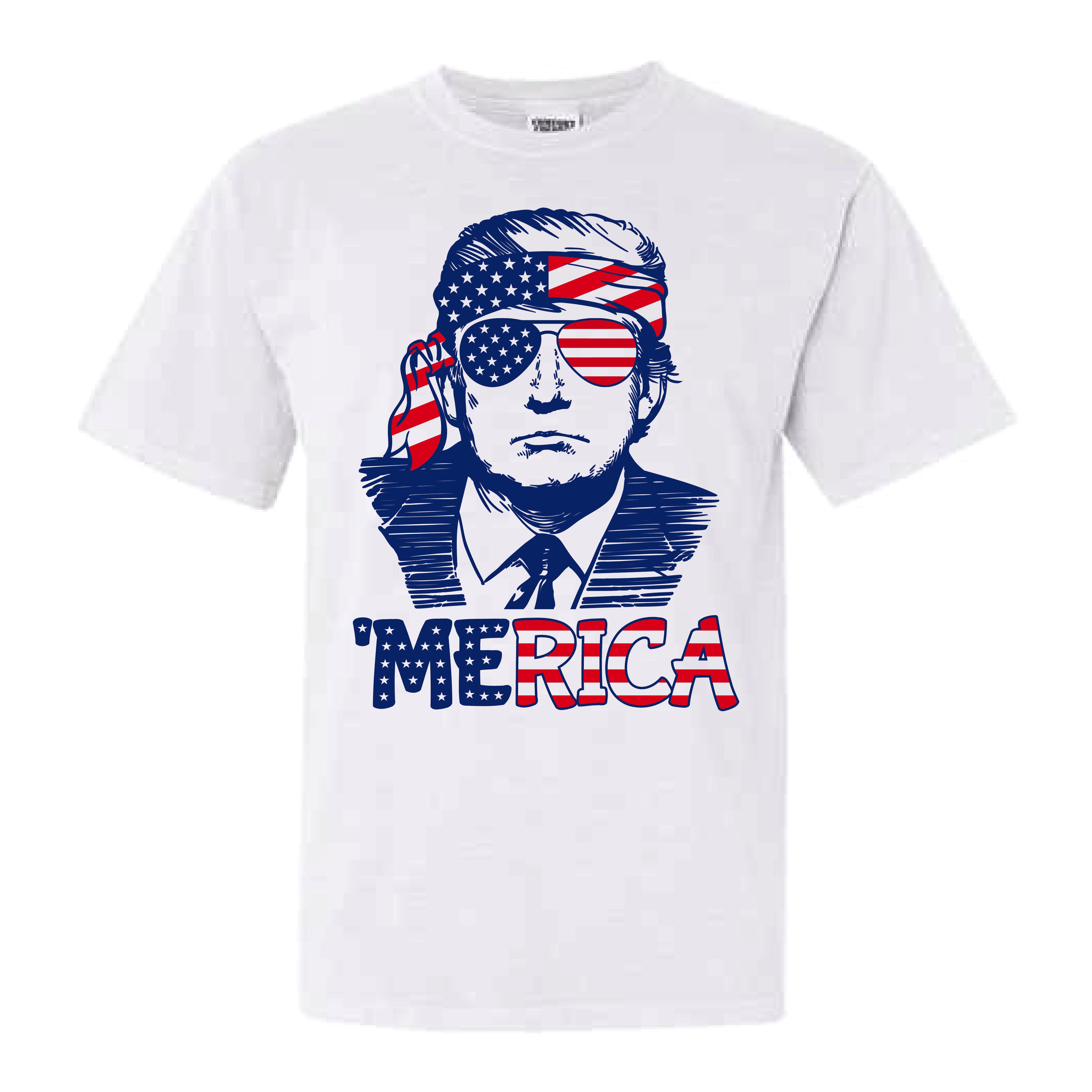 Our Trump 'Merica design is featured on Comfort Colors tee in Ivory & White or LAT tee in Heather Grey