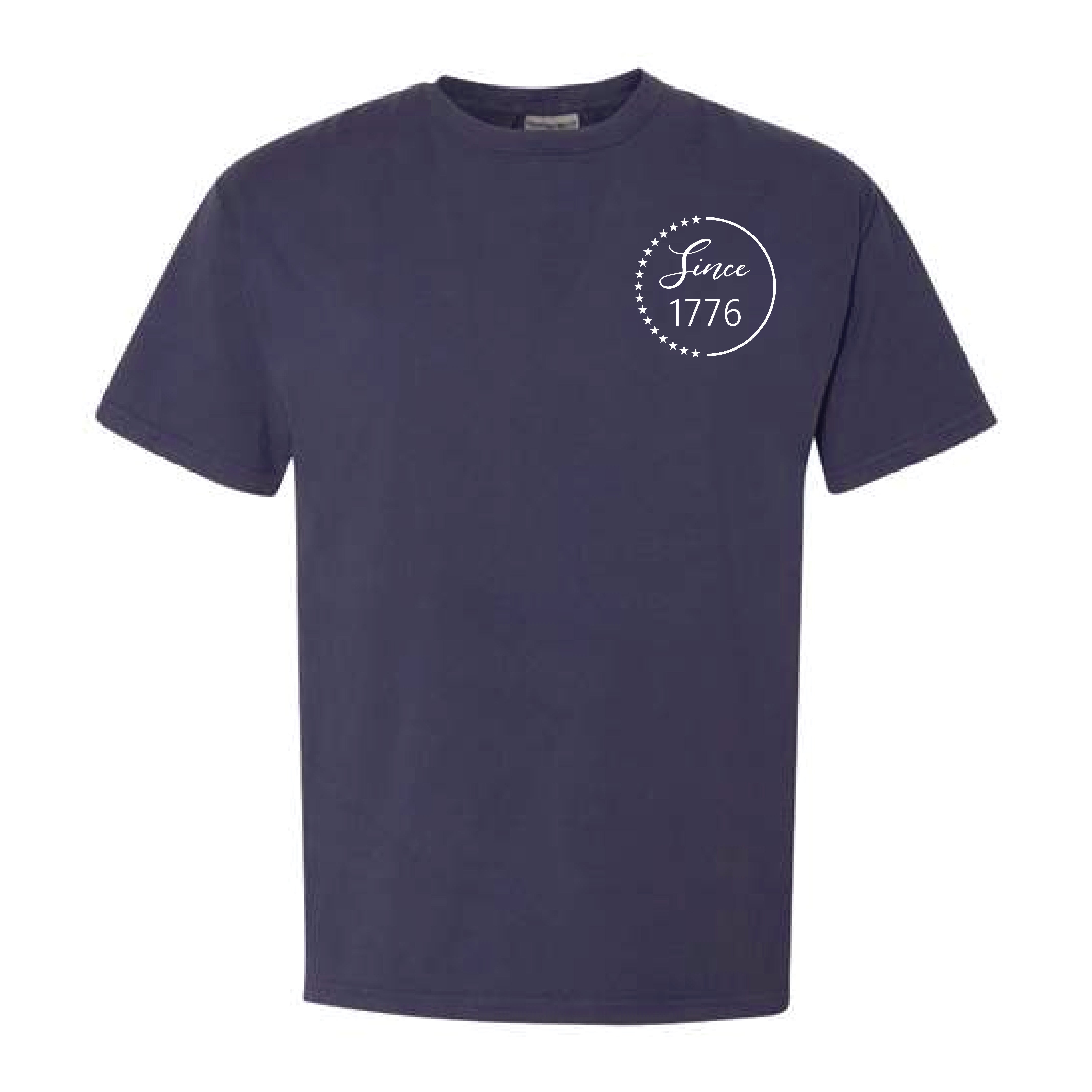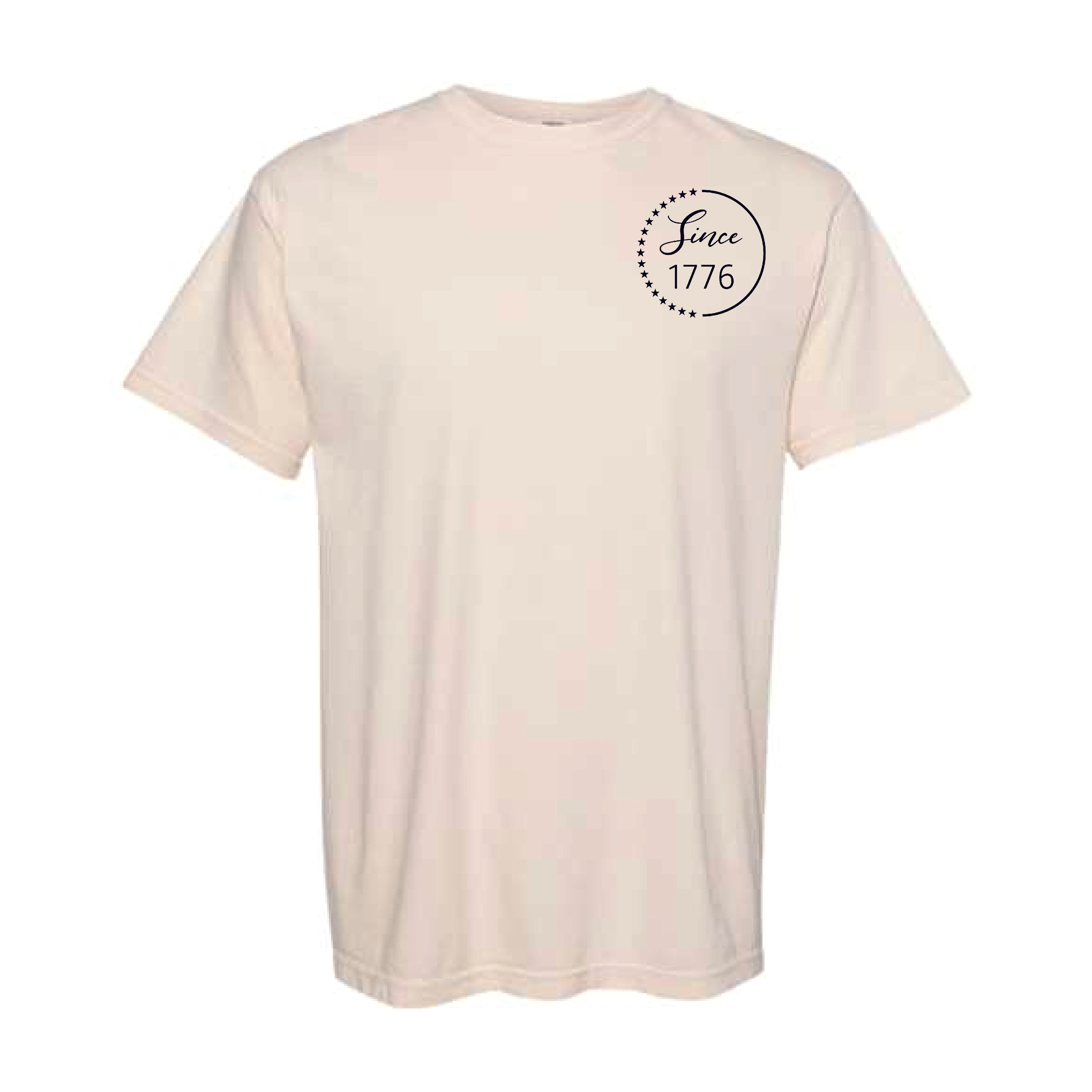 Our 1776 design is featured on Comfort Colors tee in Ivory, Watermelon & Navy