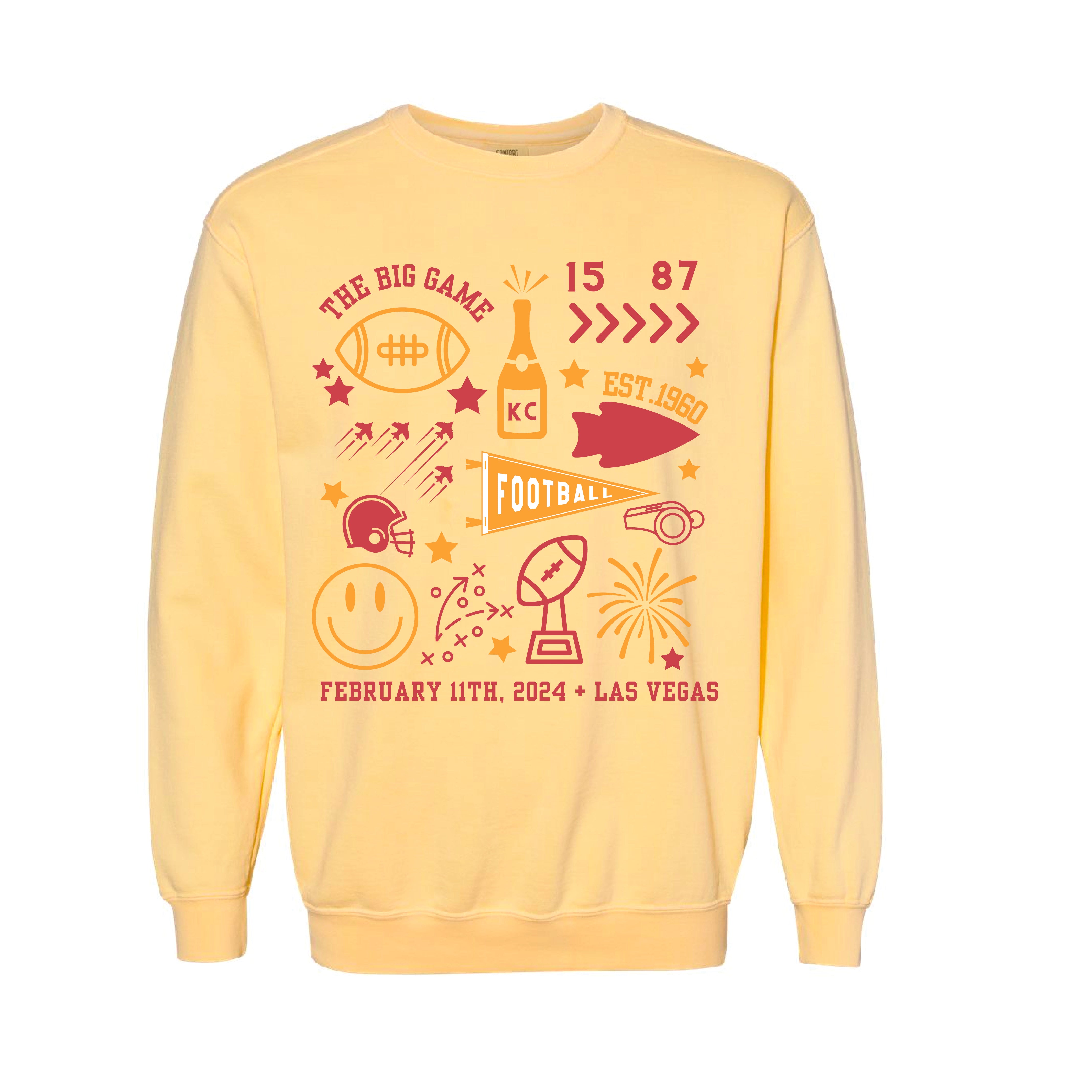 Big Game Crewneck featured on Comfort Colors crew in Butter!
