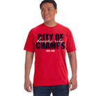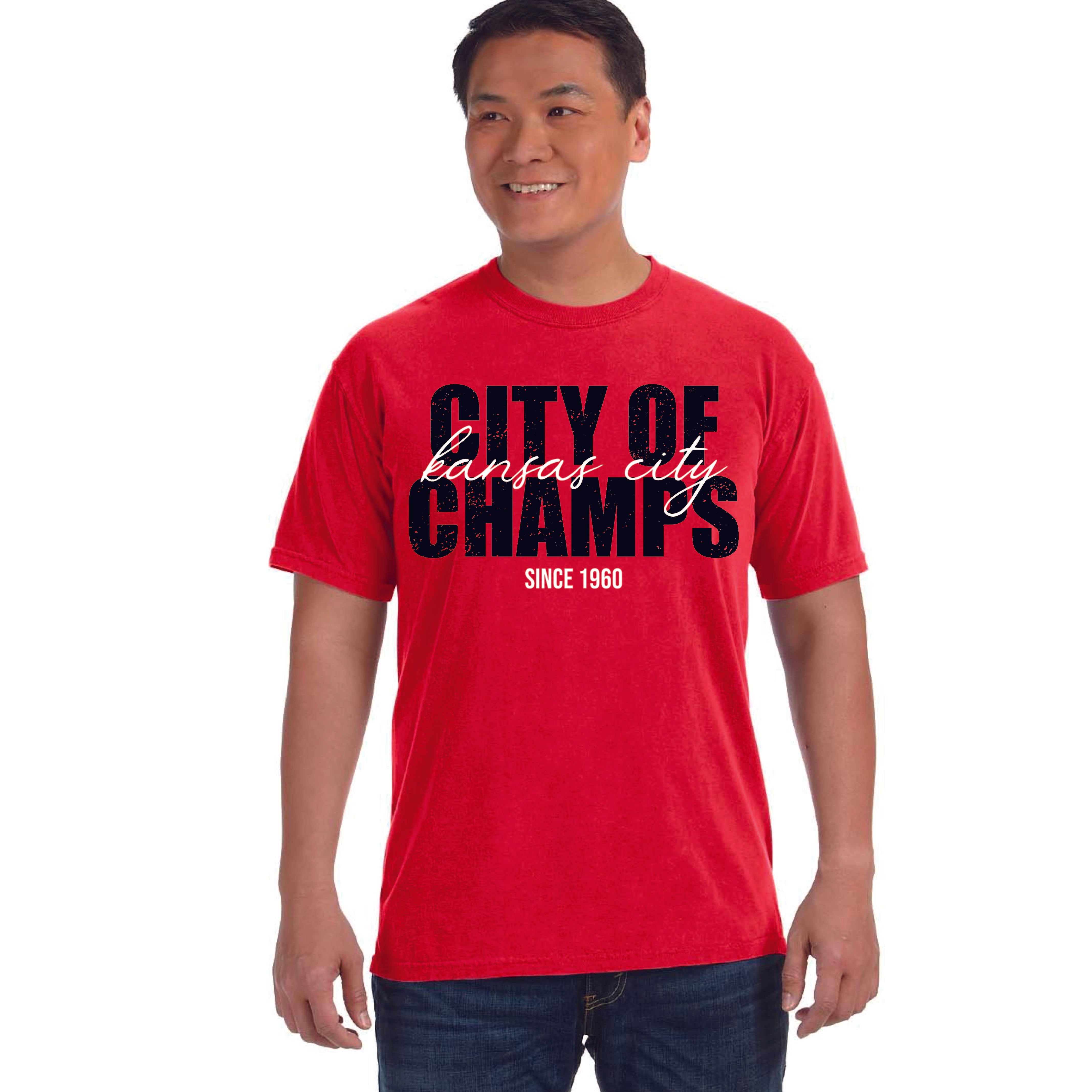Our City of Champs design is featured on Comfort Colors t-shirt in red!