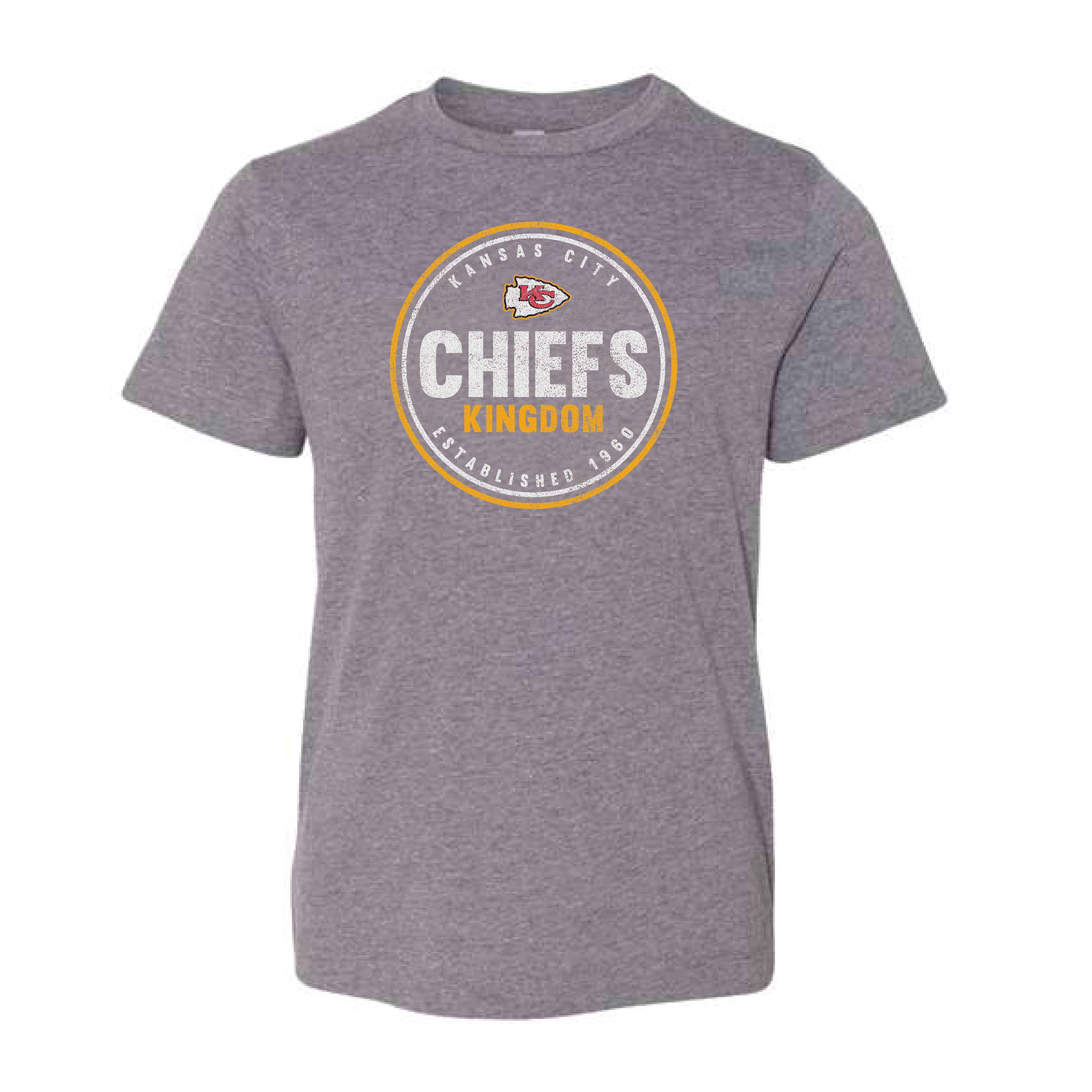 Classic Chiefs featured on Comfort Colors youth tee in grey!