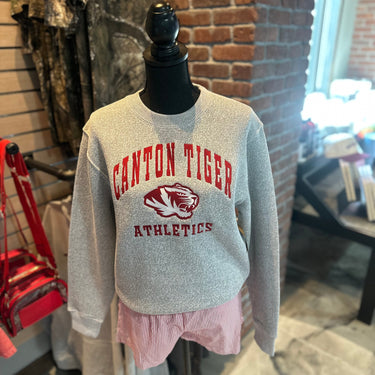 Enjoy our embroidered Canton Tiger Athletics design on Nantucket Fleece crew.