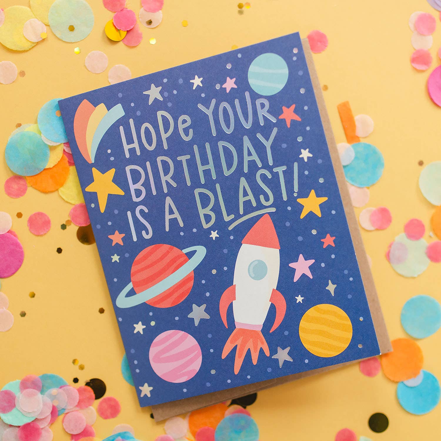 Blast off into birthday fun with our Hope Your Birthday is a Blast Greeting Card. Whether for space enthusiasts or anyone with a cosmic sense of humor, this intergalactic card is a stellar choice for making someone's birthday truly out-of-this-world special.