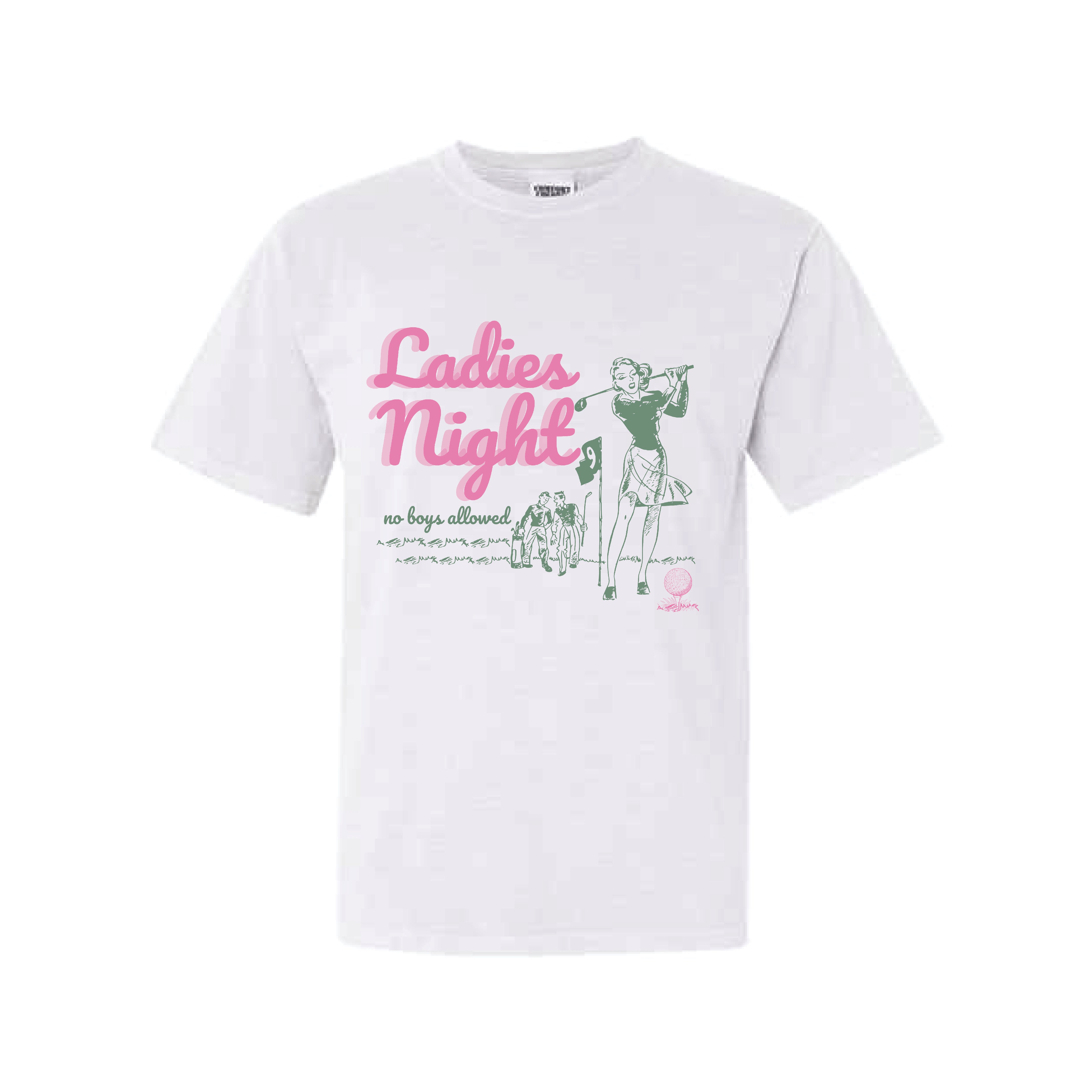 Our Ladies Night design is featured on classic Comfort Colors crew in white & chambray!
