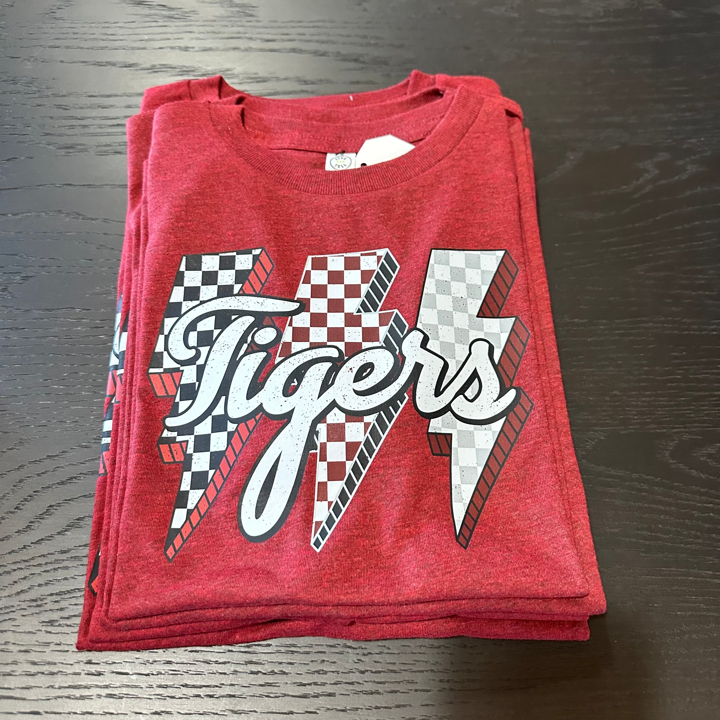 Enjoy our Tigers lightning bold design on quality heather cardinal red tee!