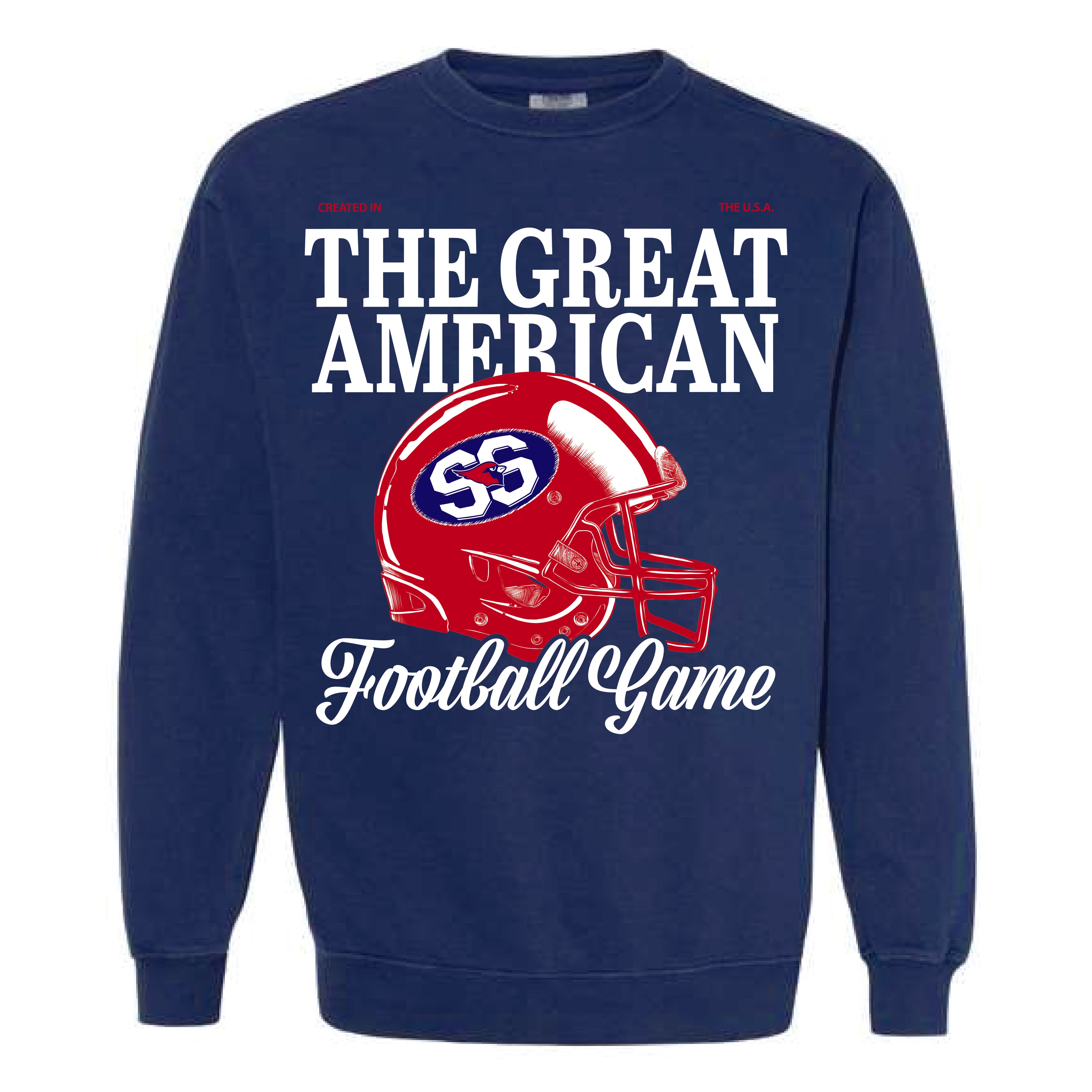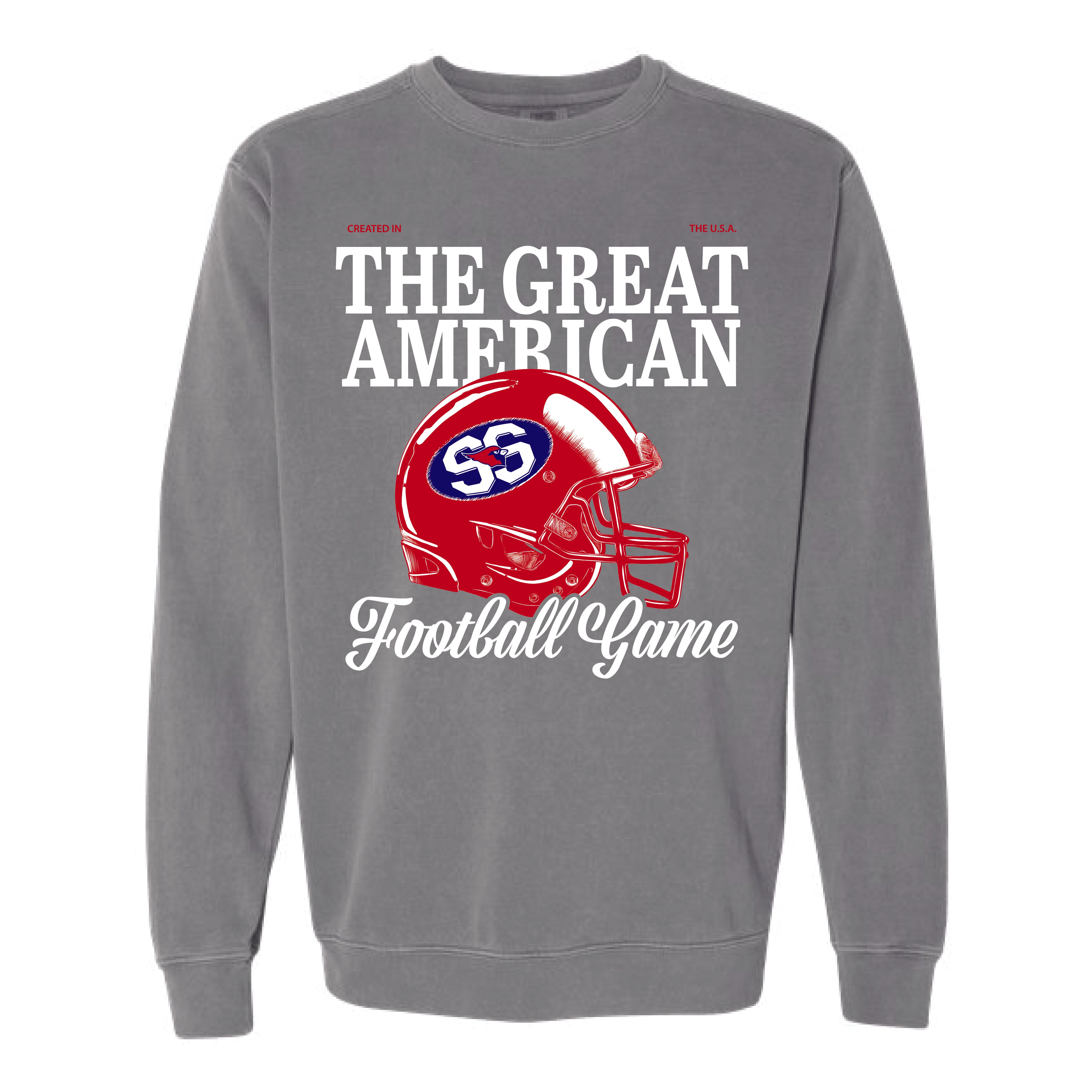 Enjoy The Great American Football Game design on Comfort Colors Crewneck in Grey & Navy! The perfect crew for cheering on your South Shelby Cardinals!
