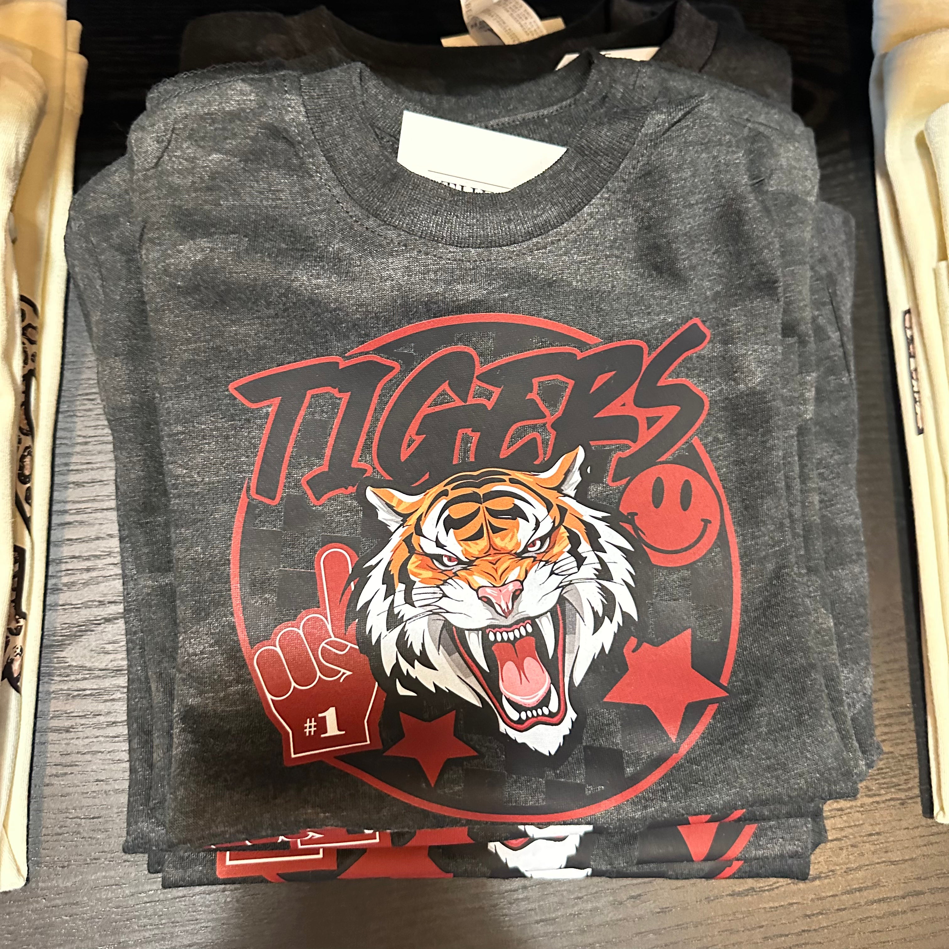 Enjoy our Tigers School Spirit design on quality black and grey camo tee