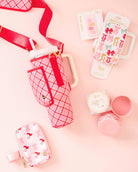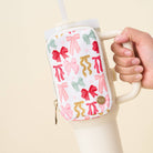 Go hands-free and make a festive statement with our holiday tumbler fanny packs. Crafted from water resistant fabric, it's perfect for carrying your small essentials like keys, chapstick, and headphones on the go. It also features a gold zipper and hardware for a darling elevated touch! Pair your tumbler fanny pack with our matching tumbler silicone boots, perfect for merchandising products together!